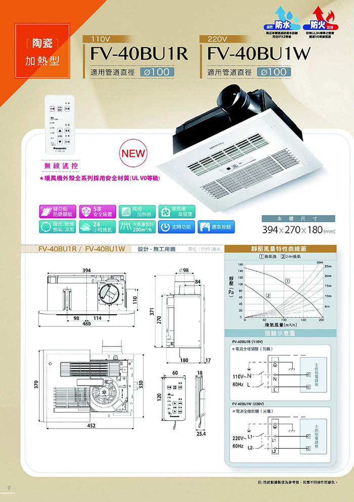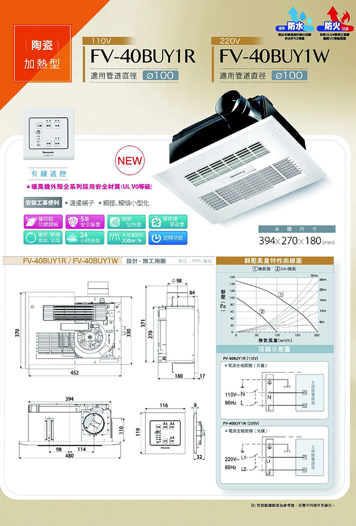 雙暖風機全系列外殼採用安全材質。UL V0等級。